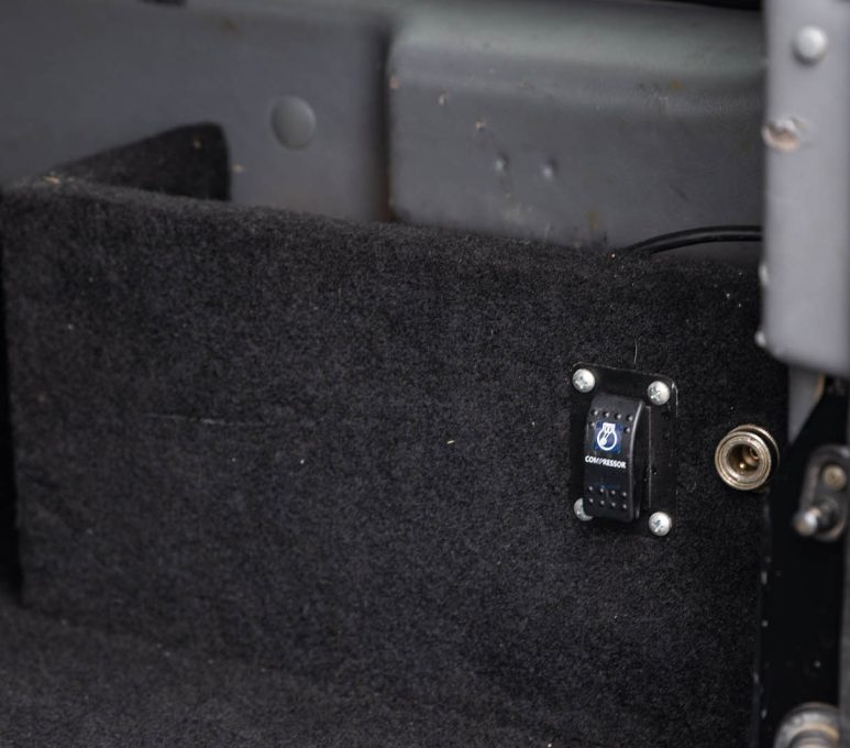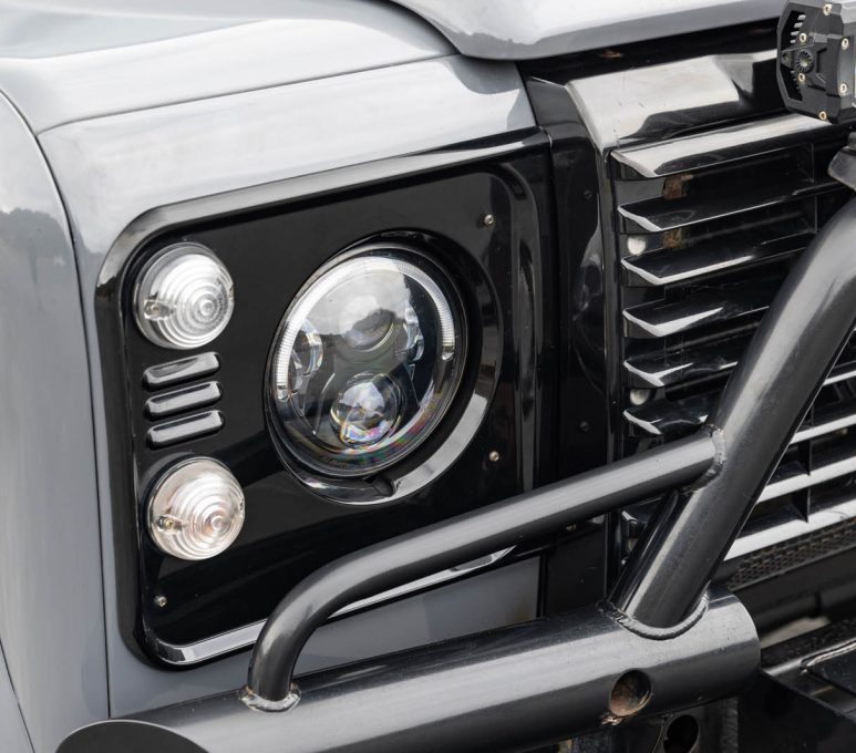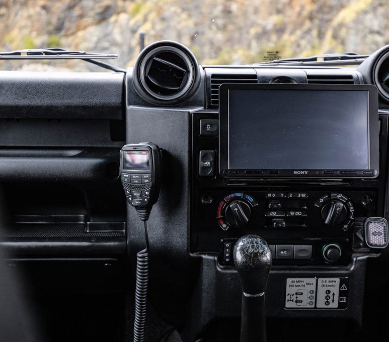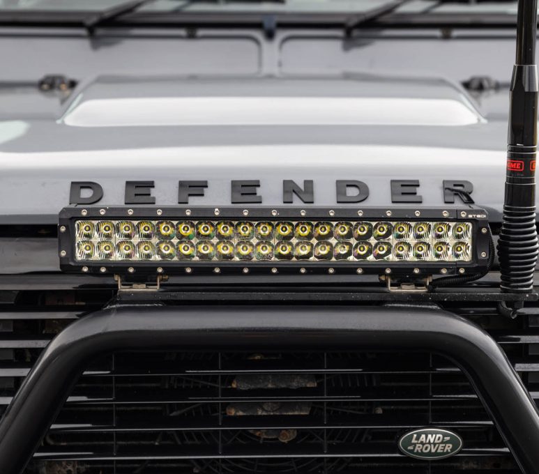 The client wanted a pretty simple upgrade to a few parts of his Defender 110, we upgraded the stereo system, added UHF communications, changed the headlights over and added a Stedi light bar. Also we custom fitted a compressor and showers system to the back of the car.